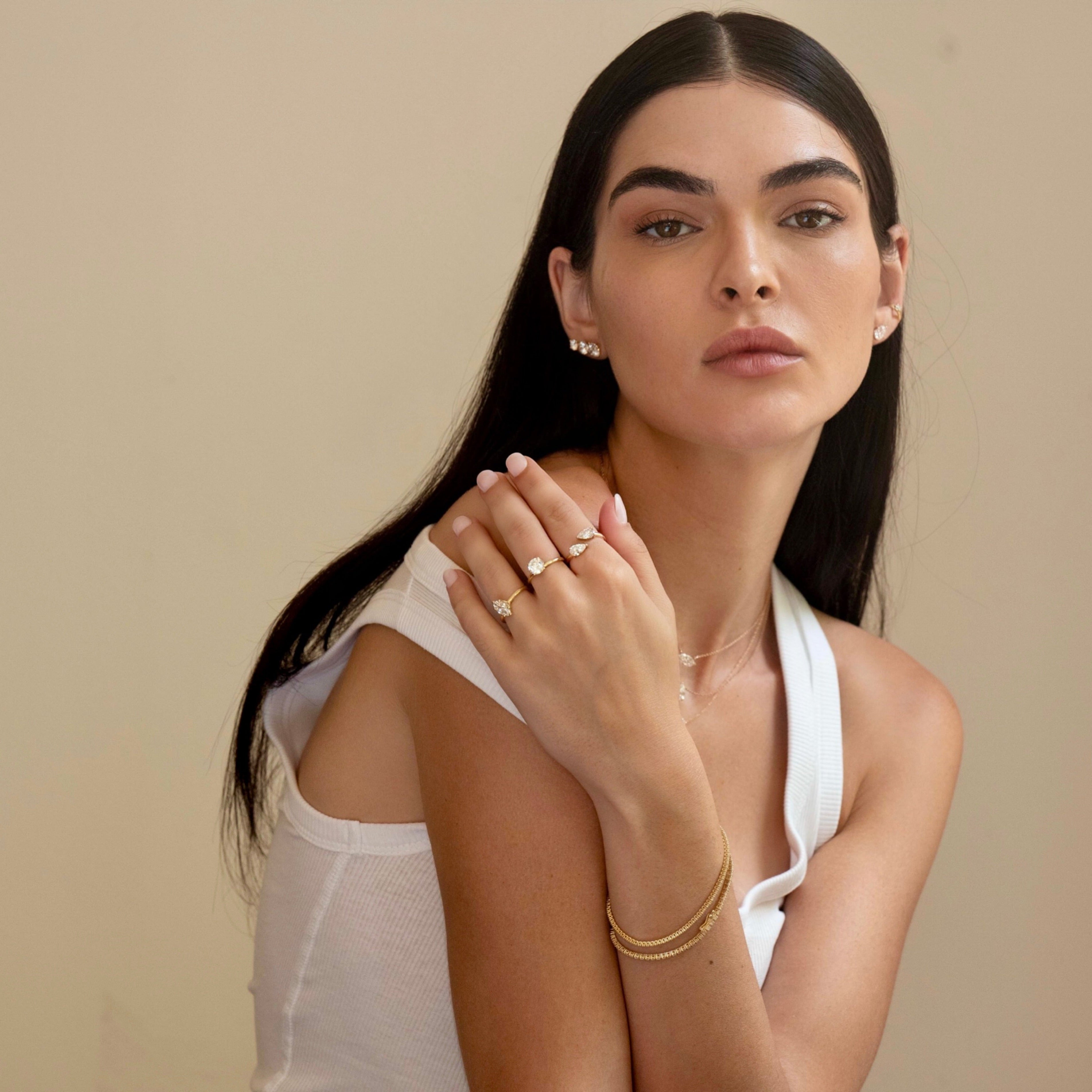 Roselle - טבעת משובצת שני יהלומי טיפה