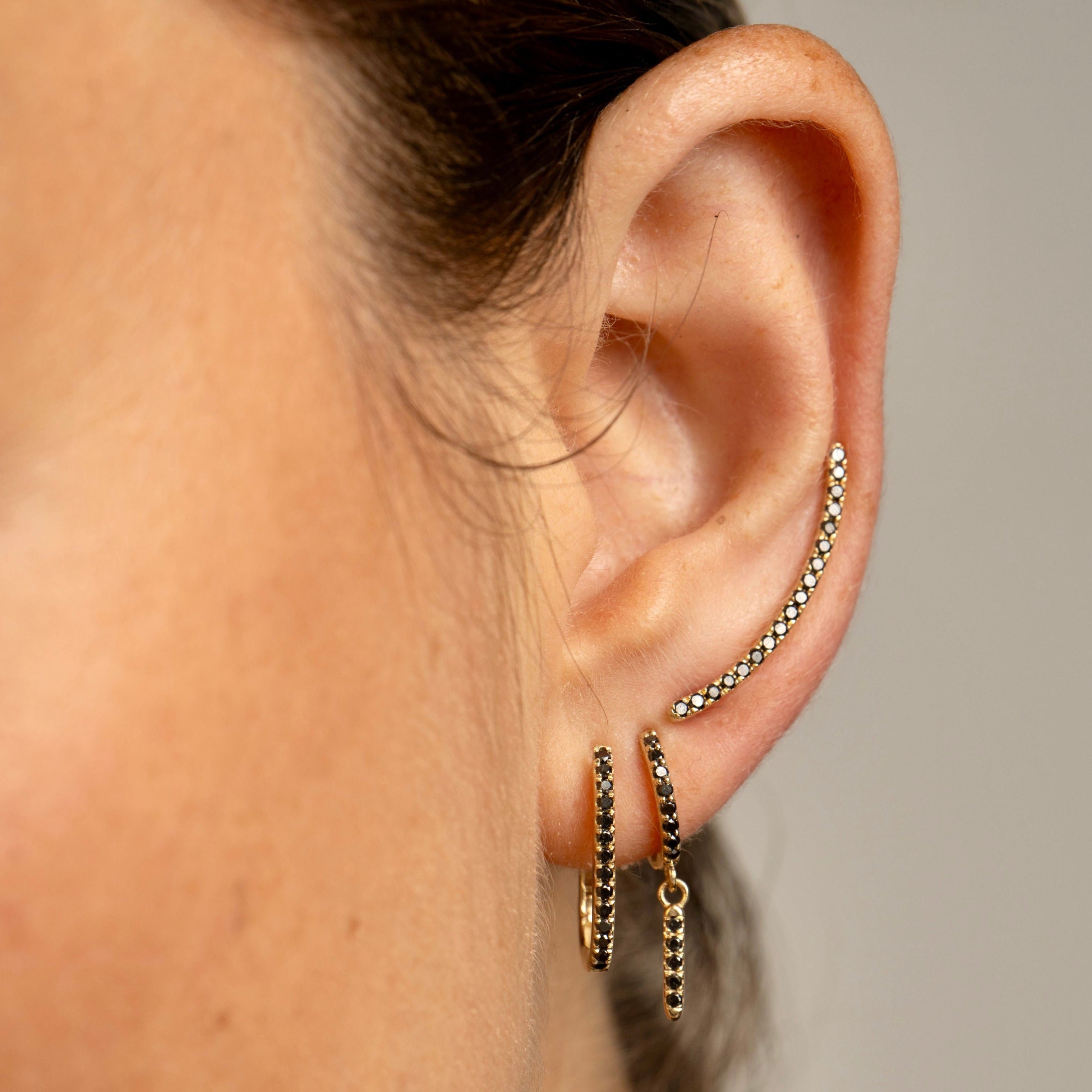 עגיל חישוק מקושט במקל יהלומים שחורים עשוי זהב 14 קראט, עגיל שיוסיף נצנוץ משגע לאוזן לאוזן שלך