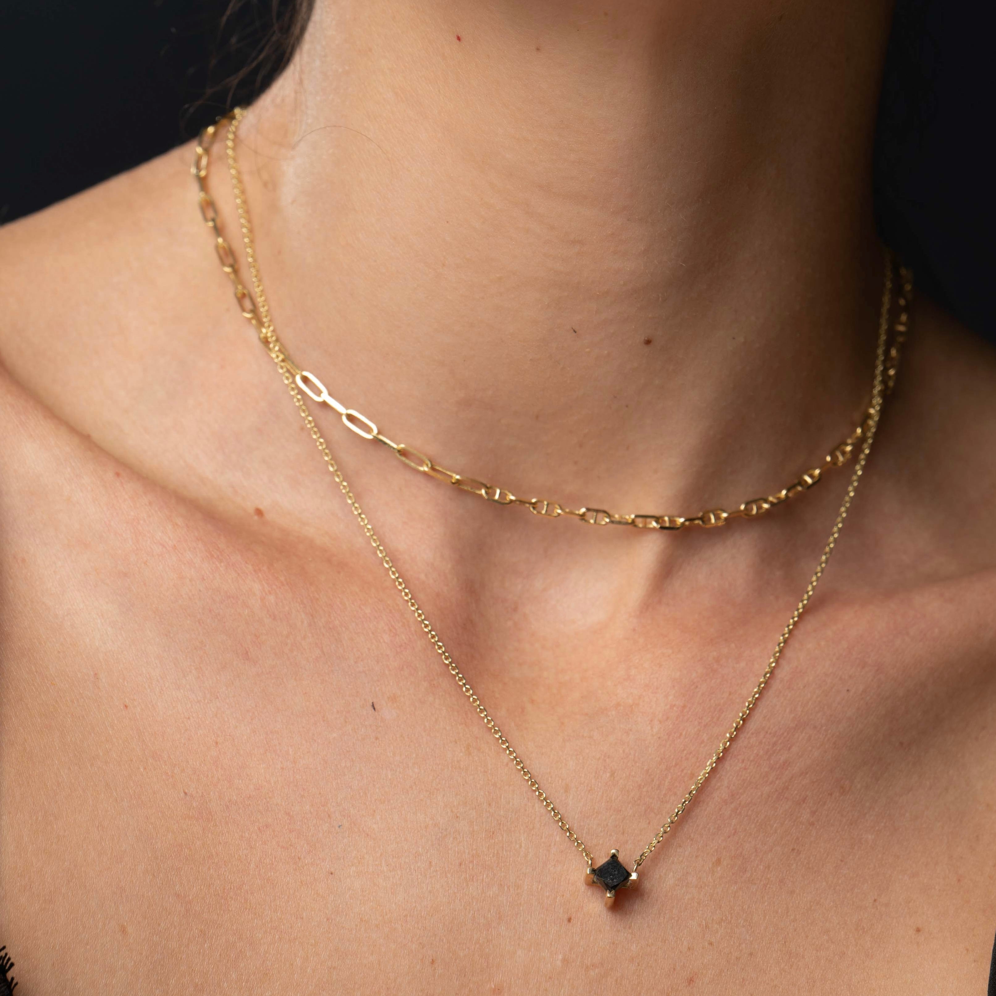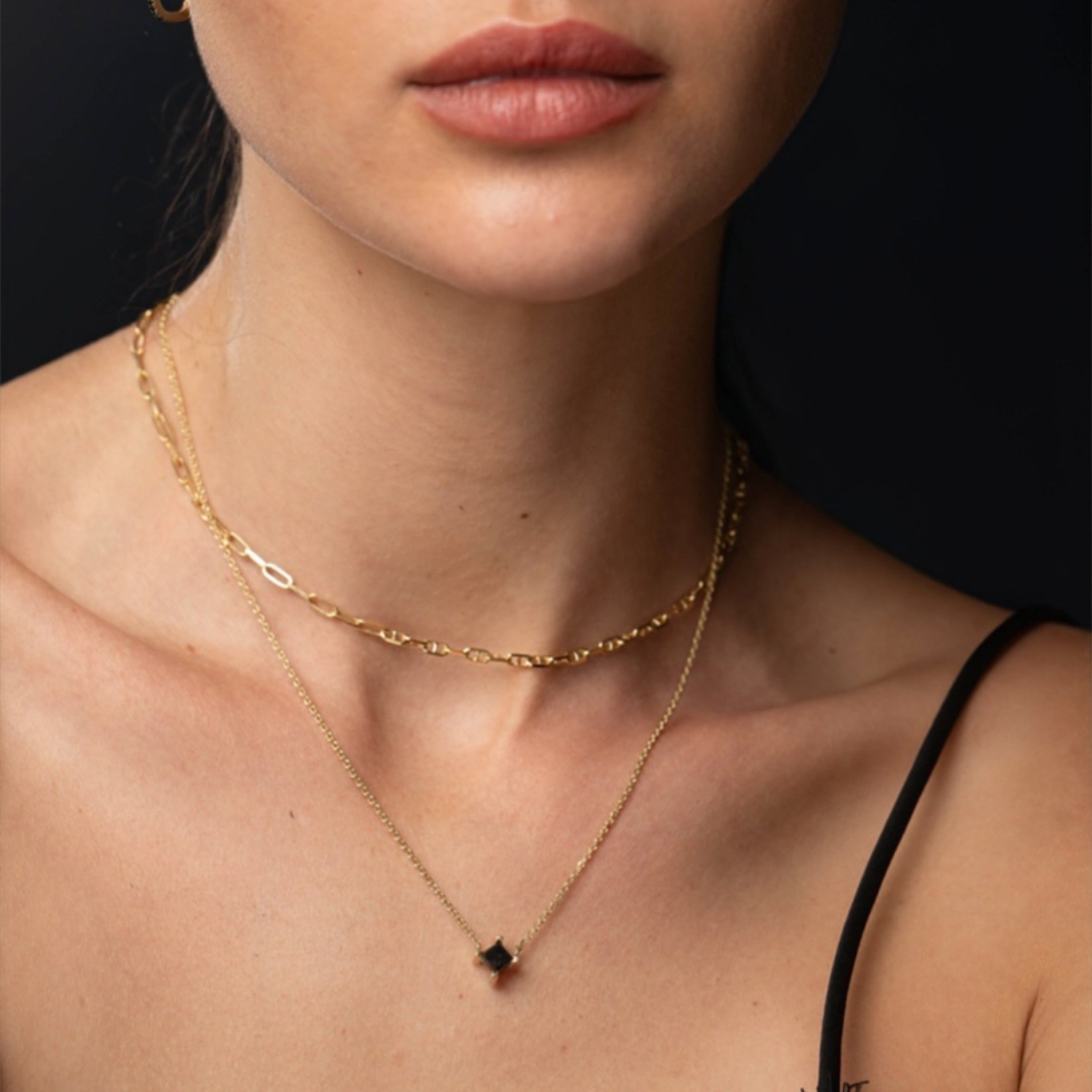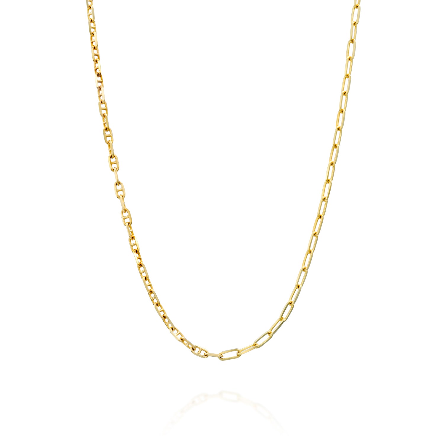 שרשרת חוליות אובלית משולבת בחוליות גוצ'י עשויה זהב 14 קראט , ליצירת מראה קלאסי עם טוויס מרענן של אלגנטיות